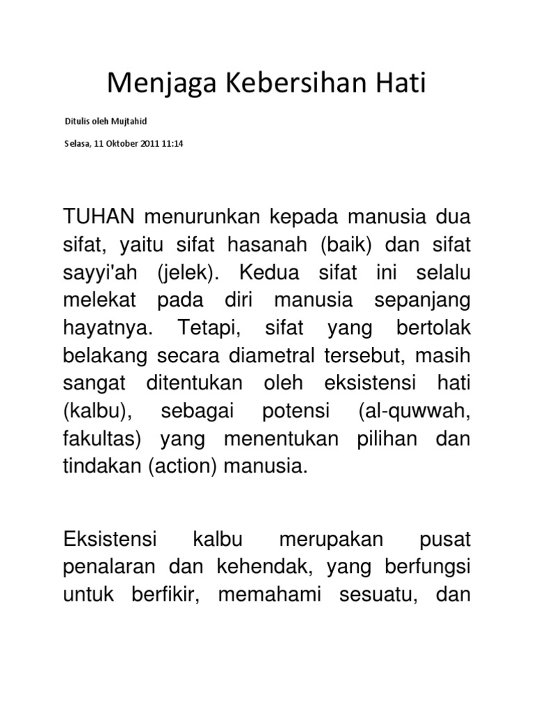 Islam Memperhatikan Kebersihan Jiwa Hati Dan Spiritual